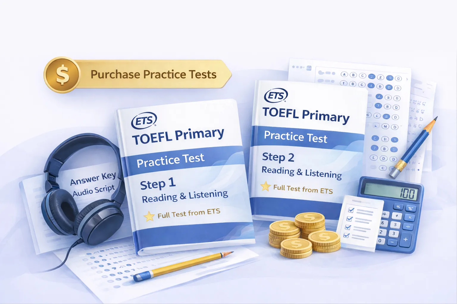 สามารถใช้ Resources/Practice ที่เกี่ยวข้องกับ TOEFL Primary/Junior และแบบฝึก Listening–Reading ตามระดับ รวมถึงคอร์สเตรียมสอบ