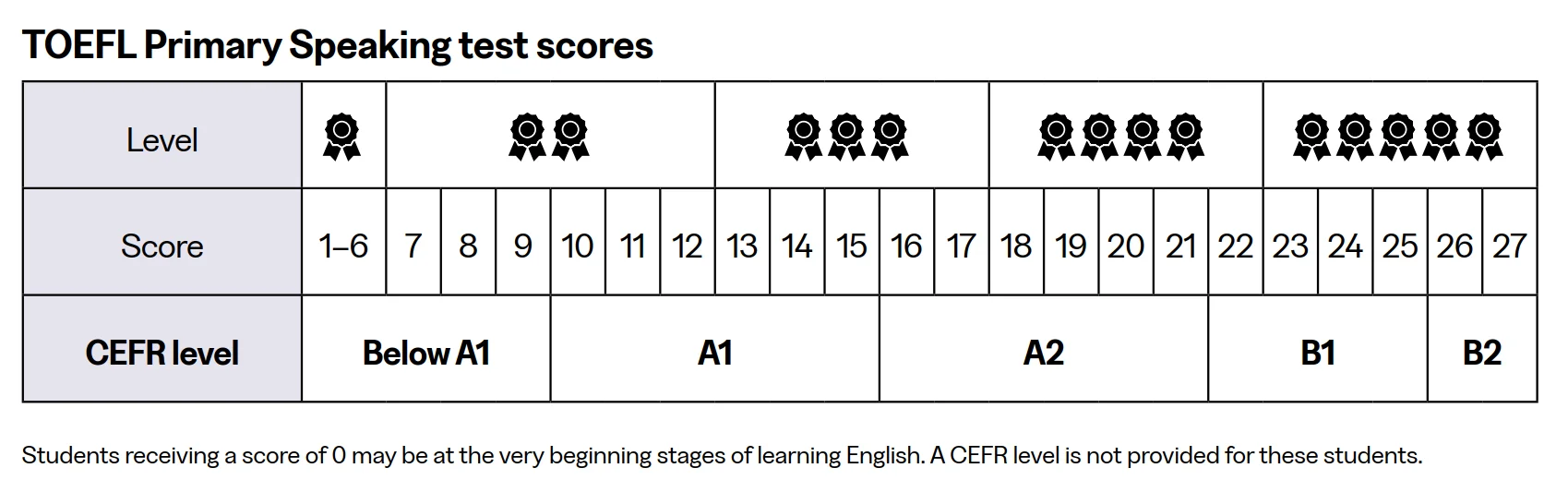 📌 ข้อควรรู้: น้องๆ ที่ได้คะแนน 0 อาจจะเพิ่งเริ่มหัดพูดภาษาอังกฤษในขั้นเริ่มต้น จึงยังไม่มีการระบุระดับ CEFR ไว้